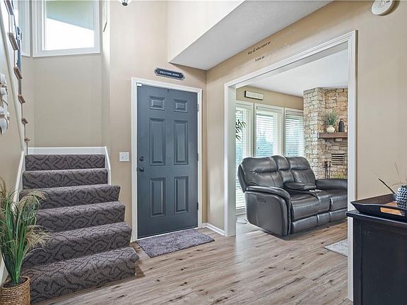 WOW! Gorgeous updated 2 story, with water views in Raintree! This well cared for home is situated on a beautiful point where you have water views from both the front and back ! Enjoy resort living, just steps from the community pool, walking paths and so much more! Main floor features LVP flooring, tastefully updated kitchen with new appliances and quartz countertops, roomy living area with fireplace, main floor laundry and amazing bonus room (use it for home office, playroom, workout room etc!). Head upstairs to find brand new carpeting, spacious owner's suite and bath (with new flooring!) and 2 additional bedrooms (one with HUGE closet and attic space attached). Lower level boasts a fabulous rec room with wet bar and 2nd fireplace, full bath, plus storage (use it for a 4th non conforming bedroom?!)! The exterior of this home is FANTASTIC! Enjoy the views on your deck and patio and large yard backing to the water and common area! Home has so many upgrades- 50 year roof, Anderson windows, newer gutters and paint- just to name a few! Don't miss this one!Taxes and square footage are to be verified by Buyer's agent. 2023-08-17