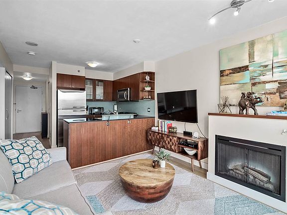 Offering a 1bed+solarium AND den home in a location that just can't be beat! This beautiful home feats a spacious layout & has been updated w/beautiful eng h/w flooring & neutral paint colours throughout, has a cozy fireplace & floor to ceiling windows in the living room to allow plenty of natural light in, a convenient solarium off of the living room that can be used as a dining area/home office & open concept kitchen w/ KitchenAid s/s appliances, 5-burner gas stovetop, and granite countertops. 'L'Aria' is situated in the heart of DT & greets you with a beautiful bamboo lined oasis and water feature, giving this pet and rental friendly building a resort-like feel. PC, Skytrain, theatres, restaurants, Granville shops & more are all just 1 block away!
