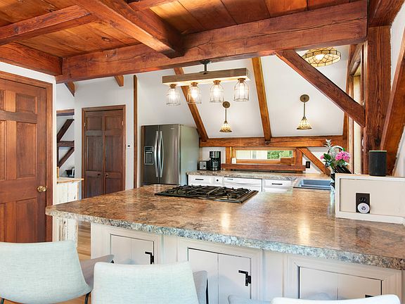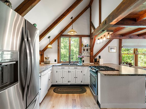 Stunning post and beam beautifully sited on over 5 acres with a mix of woods and open, level, meadow. Love to garden? Always wanted an orchard? Horses? The possibilities here are endless, and you're only 5 minutes to 91, 10 minutes to downtown Brattleboro, and 40 minutes to Mt Snow. Three bedrooms, one on the first floor, gorgeous wood floors throughout, a newly rebuilt sunroom off the dining area, or if you're feeling cozy, relax in the living room with the fireplace, and for efficiency there is also a pellet stove in the dining area. The partially finished basement is perfect for office space or guests with a direct walkout to the back. There is a three bay garage, with one bay separated currently being used as a home gym, the second floor of the garage is being set up for a detached 19x23 office or studio with a full bath. Come and see the many ways this property could work for you! Showings begin Wednesday, April 26th in the afternoon.