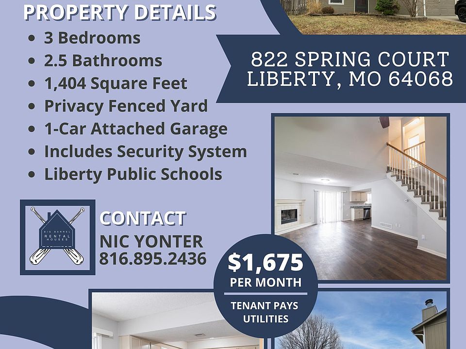 This 1404 square foot single family home has 3 bedrooms and 2.5 bathrooms. This home is located at 822 Spring Ct, Liberty, MO 64068.