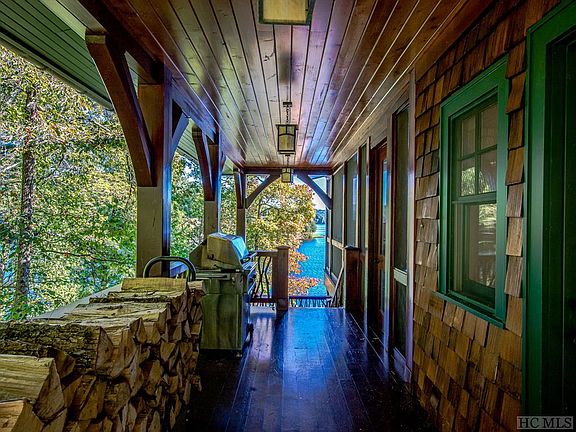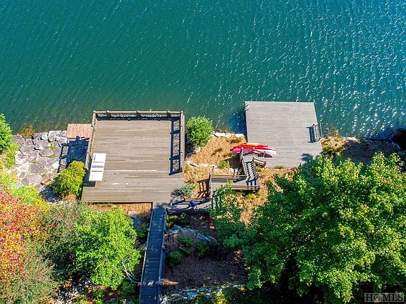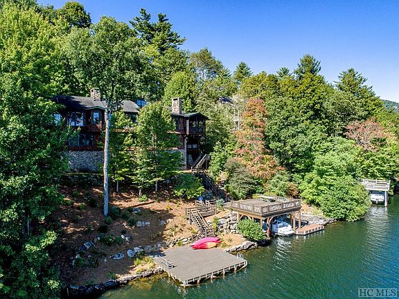 This custom built true timber-peg classic lake home features four bedrooms, four and one half baths spread over two combined lots with over 200 feet of prime deepwater lake frontage. Celebrated architect Bruce Johnson designed every room in this home to feature incredible views overlooking the pristine waters of Lake Toxaway and mountains beyond. Impressive high quality finishes are evident throughout the home-- "standing dead" Douglas fir timbers, maplewood flooring, brazilian cherry decking, redwood stair blocks, and four tennessee stacked stone and granite rumford design fireplaces to name a few. In addition to the four bedrooms, there is a bed nook with custom handcrafted bunkbeds built into the lower entertainment room. The home was built with double wall construction and insulation between living areas and also is fit with two full laundry rooms- one per floor. The kitchen features Sub-Zero freezer drawers, Stainless Decor 6 burner gas range and 2 builtin ovens, ice maker and dishwasher. As you overlook the lake you will see a large two slip cedar frame boathouse and a new dock with deep water for swimming. The home is up-to-date and ready to enjoy!