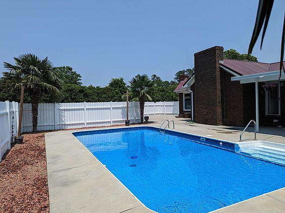Discover this delightful 3BD/2.5BA home tucked away in sought-after St. Paul's, NC. Perfectly located between Fayetteville and Lumberton, it boasts an amazing backyard oasis with an in-ground pool, palm trees, a large fireplace-adorned patio, and a covered back patio area. Inside, relish in the charm of cathedral ceilings with wood beams, two cozy fireplaces, a formal living and dining area, and an updated kitchen with granite countertops and stainless steel appliances. Enjoy the convenience of a spacious laundry room with a half bath and a two-car garage. Additional highlights include a workshop and ample yard space. Don't miss out on this versatile, stylish, and comfortable home!