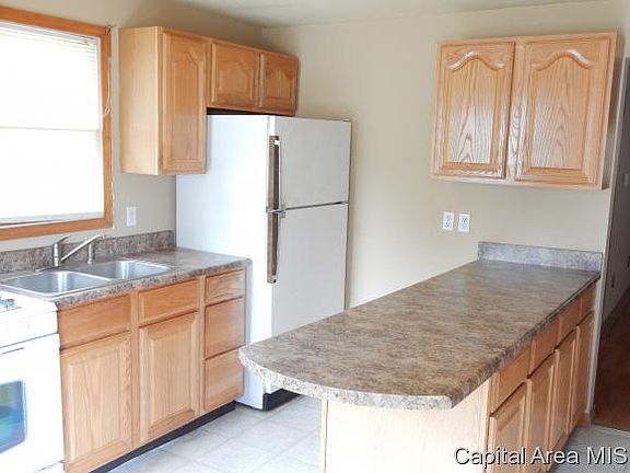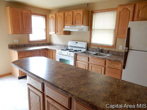 1.5 stry home has 3 bedrooms, nice kitchen cabinets & counters, new laminate flooring in the large 25 x 13 living room which has lots of electrical outlets. Utility room is off the kitchen, the bathroom and roof are two years old. Large deck on the back of the home and 28 x 32' garage that opens on both ends for ingress and egress. Affordable housing.
