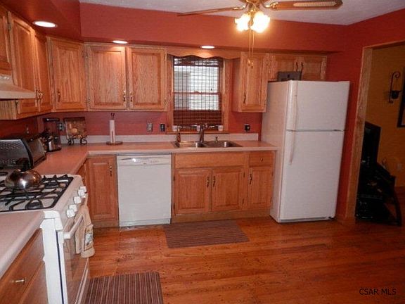 ONE YEAR HOME WARRANTY INCLUDED! Many updates, Two-story vinyl sided house. Main floor w/updated kitchen w/oak cabinets, recessed lighting, foyer & open stairs, hardwood floors, living room w/lge picture window, dining room w/french doors to covered deck & a 1/2 bath. Main & 2nd floor baths updated. One bedroom w/walk-in closet. L shaped Family room has gas fireplace, closet & built-in desk. Covered front porch, 1-car detached garage. Call today to schedule a tour!