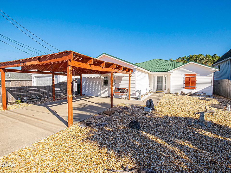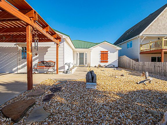'CURRENTLY UNDER CONTRACT, SELLER ACCEPTING BACKUP OFFERS' Just two blocks to Panama City Beach's white sands and emerald waters, this sweet 3 bedroom 2 bath beach home offers a great room with updated stainless kitchen, granite counter tops, a storage island and dine in kitchen. Living room area is spacious and connected to the kitchen with a breakfast bar. This home also offers a huge bonus room. Tiled Master bath has been updated and also offers shower hand rails. Split floor plan is great for privacy and a fenced back yard with open patio and large storage shed complete this home. Hardscaped with rock, the yard is low maintenance and conserves water. Bonus room entry is covered by a pergola and the sound of beach breezes are captured in the wind chimes. Make your appointment to
