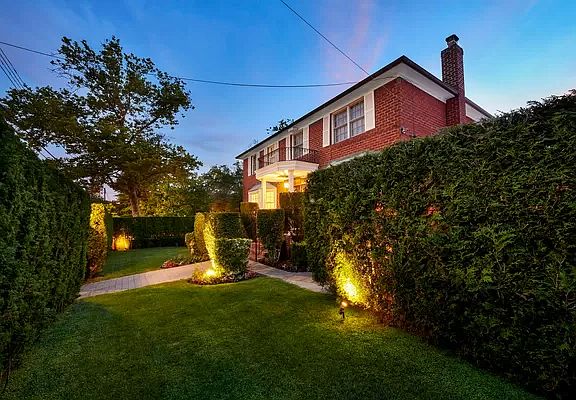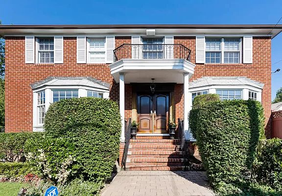 This stately four-bedroom, three-bathroom Georgian Colonial offers the spacious refined of a fine country manor with glorious private outdoor space that begs to entertain, all just two blocks from Bay Ridge's Shore Road waterfront. Spanning 2,850 square feet, this flawless home greets you with a classic center-hall layout, where you'll discover gleaming hardwood and stone tile floors, ornate crown moldings and exceptional natural light. To the left, the oversized living room invites you to relax and unwind in front of a massive bay window, while the adjacent dining room provides an elegant flow for entertaining. To the right of the entry, the family room is sure to become a favorite gathering space with another bay window and a grand wood-burning fireplace. Chefs will fall in love with the gorgeous kitchen where lovely granite counters top abundant custom cabinetry and a large island/breakfast bar. The state-of-the-art Viking stainless steel appliance package includes a vented six-burner range, double wall ovens, refrigerator and dishwasher. Enjoy seamless indoor-outdoor living with French doors open to your ultra-private outdoor oasis featuring a sparkling in-ground heated pool with an electric pool cover surrounded by a handsome bluestone patio. On the second floor, the serene owner's suite beckons with windows on two exposures, a huge walk-in closet and a breathtaking en suite spa bathroom featuring floor-to-ceiling stone tile and a spectacular benched rain shower with body and handheld sprayers. Three extra-large secondary bedrooms share an oversized full bathroom equipped with a jetted bathtub and separate shower. The beautifully finished lower level offers two expansive rec room areas to cater to your exact needs. You'll have plenty of space to create a playroom, media room, home gym, office, bar or all of the above. Two huge storage rooms, a full bathroom and a laundry room complete this well-planned level. This expansive 52-foot by 92-foot corner lot includes a gated driveway. Lush landscaping and wall of hedges and brick add total privacy and magnetic curb appeal to this move-in ready Bay Ridge residence. Located directly across from the Fort Hamilton Athletic Field and playground, this home is also close to outstanding dining and shopping along 3rd Avenue. Breathtaking waterfront outdoor space and bridge views are just two blocks away. Excellent bus service, the R train, Bay Ridge Ferry Terminal, Belt Parkway, Gowanus Expressway and Verrazano-Narrows Bridge provide easy access to the rest of the city and beyond.