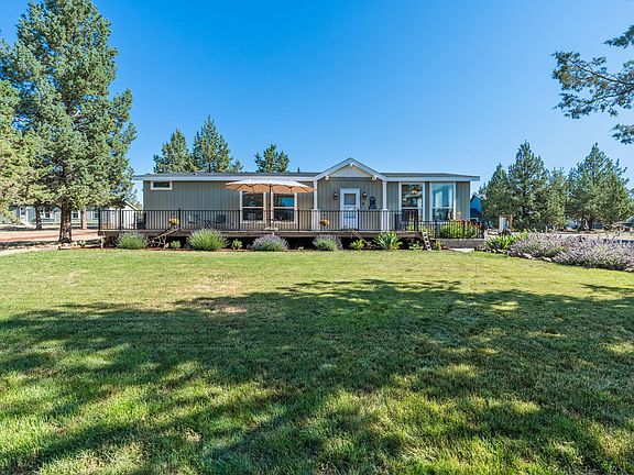 This home is truly a gem located on the Crooked River Ranch. It is in immaculate condition. You will never feel like you are in a manufactured home once you walk through the door. The 8.5ft ceilings gives you a feeling of many more square feet of living space. The open floorplan of 1680sf features 3 bedrooms (one bedroom could be an office) and 2 full bathrooms, new high end LVP flooring and carpet throughout, a large kitchen with Alder cupboards, breakfast bar, and laminate counters. The very large windows in the living area allow for natural light in and beautiful views of nature. Primary bedroom has walk in closet, double vanities, linen closet and shower stall. There is a 2 car garage which includes shelving as well as a work bench. The property also has 2 RV hook-ups, (30 or 50 amp) water and a septic dump, dog kennel and a shed for additional storage. The large front deck is a great way to share the quiet peacefulness and beauty of living on the Ranch while entertaining.