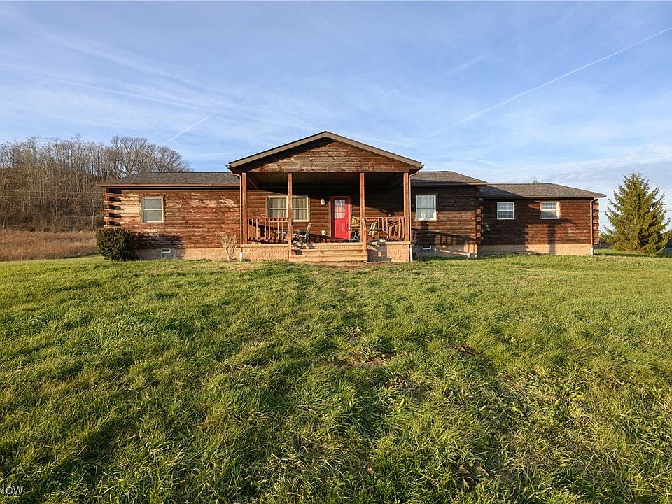 If you're looking for a peaceful escape that still keeps you close to everything, you're going to love this cozy 3 bedroom, 2 bathroom ranch log home. It sits on a beautiful & private 3.47-acre lot with plenty of room to breathe! This comfortable-living layout features a split floor plan and first-floor conveniences. The living, dining and kitchen are ideal for hosting to never miss any of the action. The primary bedroom has a larger walk-in closet and an additional closet for more storage. Private ensuite to finish off the retreat. Two more generous-sized bedrooms and full bathroom for kids and guests. 13-course basement is waiting your finishing touches for added square footage. Plus, you get a convenient 2-car attached garage. What really makes this place special is the space you get outside. Not only do you have the acreage, but there's a huge 26x36 barn. It’s ideal for storing your boat, working on projects, adding animals to the compound, or just keeping all your gear out of the weather with fantastic extra storage space up above. Location-wise, you can't beat it. Just about 10 minutes away from both Leesville Lake and Atwood Lake, meaning easy access to fishing and boating at your fingertips. And when you need to run errands or grab dinner, New Philadelphia is just moments away. Sellers have already taken care of some of the big stuff for you: both the house and the barn got brand-new roofs within the last 2 years, updated the well pressure tank (1 year), and the hot water tank (5 years). There’s also some fresh paint inside! The best part, though, is the porch. It wraps around and offers endless views—it’s the absolute best spot for enjoying those quiet morning coffees or watching the beautiful evening sunsets. This place is ready for you to put your own stamp on it and call it home just in time for 2026. Come see it for yourself!