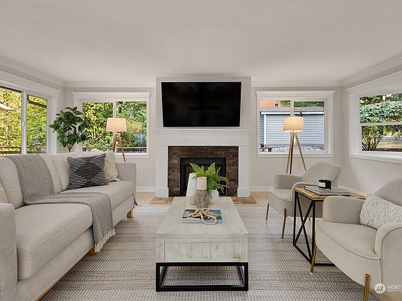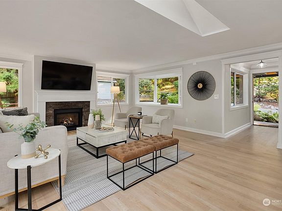 Beautifully Remodeled one story nestled on a large .76 Lot. Large Windows throughout to take in the tall evergreens and natural light at its best. Close in-city location w/ total privacy & superbly designed garden retreat. Entertain on the Large Deck that wraps around to the front. Huge skylights, Gas FP, den or 3rd bedroom off living room, Master with Spa like En-Suite that includes walk-in, tiled shower with double vanity. Spectacular grounds incld private master Stone patio. Close to Inglemoor Highschool & Moorlands Elementary. Northshore School District. Welcome Home!