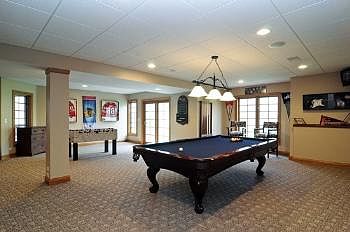 Remarks: Incredible, all brick, 13 yr new ranch in prestigious River Orchard. It spans approx. 7000 Sq Ft w/ walkout! It boasts 4 bedrooms, 4.5 bths, library, luxury kitchen w/ cherry cabinets, granite cntrs, high end appl. The finished walkout features incredible wet bar, billiard room, golf pit w/ putting green, full bath. Serene, wooded, acre lot. Heated 3 car gar. Hm has white millwork/doors/trim! Hot tub included.