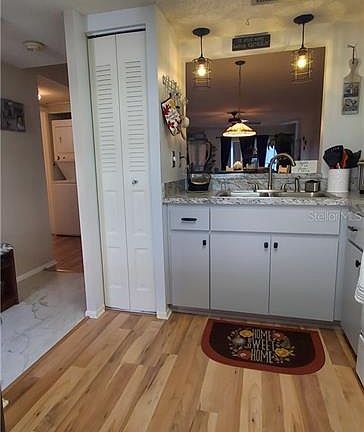 An updated condo where you'll have to really look to find something else that needs to be done. The 2-bedroom, 2-bath condo in Timber Oaks, a very popular 55+ community, has been nearly completely redone over the last four years. You'll find in the kitchen new base cabinets, new granite countertops, new sink, new upper cabinet doors, and a new disposal all this year. In 2019, in the master bathroom a handsome new vanity with a granite countertop was installed along with new ceramic tile and grab bars in the step-in shower. Both baths have had the toilets changed out. The year before that, the condo got new hurricane-proof windows, and on the lanai newer tinted vinyl windows and solar blocking shades were installed. 2016 brought a full-size combo washer and dryer, ceiling fans, light fixtures, and best of all, lovely new wood-look laminate throughout. Sellers have a transferrable home warranty on the condo through May 2021. The condo fee includes exterior maintenance on the building and lawn, the roof, cable, water, and sewer. Timber Oaks is close to shopping, restaurants, golf courses, area beaches, public library, and hospital. The fees cover two pools, large one heated, hot tub, fitness center, sewing, billiard, computer, & card rooms, library, performing arts center, tennis, shuffle board & bocce courts. A rare perk that you'll find in Timber Oaks is the weekly bus service for residents who may no longer drive to places such as Publix and Walmart. Such an active lifestyle, so come enjoy it!