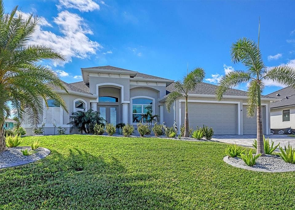 Big Price Drop on this Almost New, Stunning & Meticulously Maintained 2019 DM Dean Home. Sitting on a Rare South Facing Lot this Home is Ready for New Owners. Striking Curb Appeal Awaits your Visit with Custom Curbing and Rock with Mature Landscaping. Follow the Paver Driveway up to the Double Front Door. Imagine this is Your New Home. Take In the Open Floorplan of the Great Room, Kitchen & Dining Nook. The Ceilings are 14ft High in the tray ceiling & give a grand feeling. 16 feet of Sliders in the Great Room Give a Full View of the Oasis that awaits Outside, They also pocket behind the wall for indoor/outdoor entertaining. The Great Room has Ample Space to Spread Out and Relax. Entertain Family & Friends in this Chef's Kitchen with Custom Cabinets, Drawers & Wine Refrigerator. Notice the Counters are a Beautiful Quartz with a Granite Sink. Only the Best for the Chef of this Home. Seating for Dining is No Problem with the Additional Island Bar. The Nicely sized Den/Office has Plantation Shutters & can double as a flex room. The Owners Suite is Anchored on the Left Side of the Home and as you Enter this Spacious Room Notice the Tray Ceiling & Sliders out to the Lanai. This Room Boasts 2 Large Walk-In Closets and a Spacious Owners Bath With A Walk Through Shower That will Amaze You. Tile To the Ceiling for Easy Cleaning, Dual Sinks and Large Counter Spaces. On the Right Side of the Home you will Find 2 Nicely Appointed Bedrooms. Bedroom 2 Has a Slider that Leads to an Outdoor Sitting area. Bedroom 3 is Large enough for 2 Twin Beds & Still feels Spacious. The Guest side of the Home has an additional Bathroom with a Walk-In Shower that Doubles as the Pool Bath. A Large Laundry Room Has Been Outfitted with Built In Cabinets & Can be used as an Additional Study Area or Craft Room. Storage is always a Plus and this Home Has an Abundance of it. The Covered Lanai is 30ft Long and Big on Space for Relaxing or those Get Togethers with Friends & Family. The Finished Outdoor Kitchen is Unique with Starboard Cabinetry, Leather Granite and a Spot to Mount a TV for those Shows & Sports. The Pool Cage Extends the Whole Length of the Home 64 Ft. Which allows for this Oversized 11x32 Heated, Saltwater Pool with Sunshelf, Waterfall & Bubbler. Pool Cover is Included. Did you noticed the added touch of the Outdoor Shower with Tiled Wall. Do You Dream of Boating Near & Far, It can all be Done from the Back of your Home, Walk down your Paved Sidewalks to a 70ft Paver Stone Patio Dockside & a 30Ft Engineered Wood Dock. Your Boat will Feel Right at Home on this 10,000lb Lift with Canopy Cover. There is also Electric and Water Dockside for your Convenience. The Oversized 3 Car Garage has been divided and the Single Side is Electric Vehicle Ready with 50amp Plug. The upgrades in this home are Numerous, Here are a Few.. Hurricane Windows & Doors, 3 Zone Heating & Cooling, Spray Foam Insulation, Security System, LED Lighting, Smart Home Devices, Cat 5 Wiring, Sprinkler System, Extended Warranty on Appliances, Lift Master Garage Doors w/Cameras, Epoxy Garage Floor & More. If you Miss This Home You Have Missed the Opportunity of a Lifetime. Make An Appointment to See this Amazing Property. You Won't be Disappointed, It Won't Last Long.