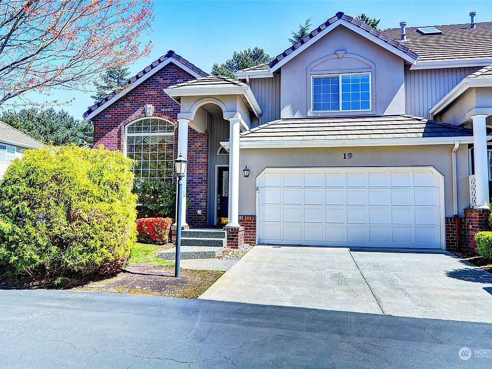 Welcome to Possession Ridge, a highly sought after gated community in Mukilteo! This rare 1704 sq. ft. townhome has 3 bdrms, 3 bthrms a 2 car garage & 2 driveway parking spots! As you enter you will be greeted by the inviting living rm w/huge windows & a double sided gas fp. Light & bright! Generous Storage. Lovely dining rm is off the kitchen & boasts beautiful French doors to the private deck! Kitchen has lots of cabinet & counter space, a charming garden window overlooking tranquil yard, & striking glass cabinets. One bdrm & bath are conveniently located on the main floor. Primary bdrm is huge & has a private balcony! Easy access to I-5, 405, Boeing, parks & Mukilteo waterfront. Don't miss this one! Property has been virtually staged!