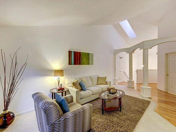 Fabulous condo in elegant gated community. Soaring vaulted entry with skylights and open staircase. Quality millwork, detailed with columns, 6 panel doors, oak hardwood floors, and two sided marble gas fireplace. Bright open floorplan ideal for entertaining, French doors, and gas range in kitchen. Master bedroom boasts coffered ceilings, large walk in closet, and spacious 5 piece master bath. Large two car garage with extra storage. Convenient access to shops and schools. A must see.