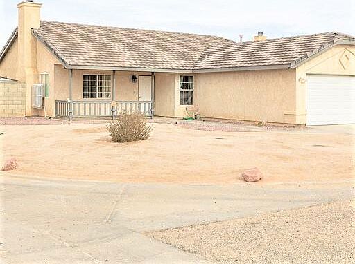 Amazing Pool Home featuring 1404 sq.ft., 3 bedrooms, 1 3/4 baths on Corner Lot in California City Ca.  Open floor plan with incredible tile entry into the main living area with vaulted ceilings and a tile surround wood burning fireplace with hearth.  Elegant kitchen boasts tile counter tops, newer upgraded stainless steel appliances including the refrigerator. Large dining area with view of the pool just off the covered patio. Oversized bedrooms & Master suite features vaulted ceiling, ceiling fan, spacious closet and access to the rear yard. Master bathroom includes dual custom vanities and a custom  walk in shower designed by DuraBath.  Property includes a tile roof, central heating & air + 3 evap coolers, shed, professional desert landscaped front yard with zero scape rear yard surrounded by a block wall. Splash into your inground pool surrounded with newly custom stamped/stained concrete. This is a lovely house in a quite neighborhood and close to all California City,Ca amenities.