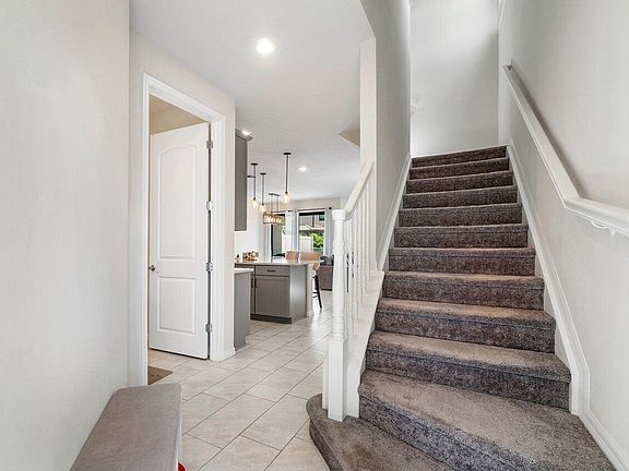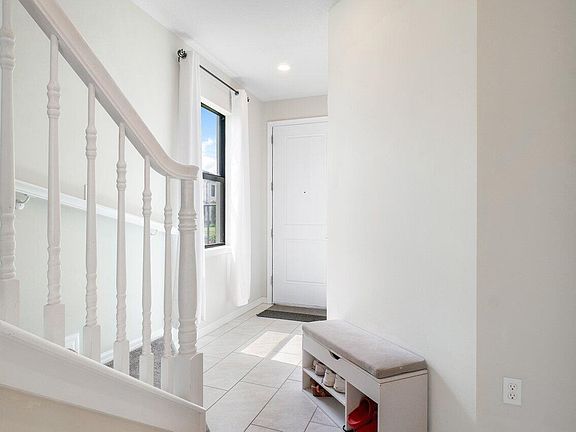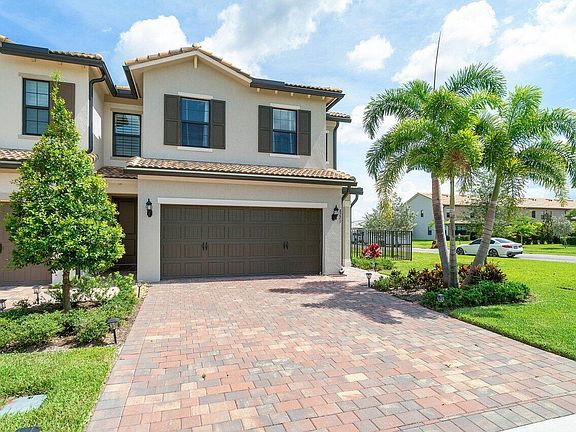 Move into this newer construction 2021 Leland model townhome with over $35,000 of interior upgrades. This custom residence features over 1900sft of living space. Enjoy the open floor plan with upgraded plank style-tile flooring throughout. Delight in the spacious kitchen with large center island featuring Quartz countertops, Stainless steel appliances, Custom light fixtures, Backsplash and 42'' Crown molded cabinets. Relax in your expansive primary suite with upgraded tray ceiling, seating nook and large walk-in closet! The primary bath showcases a quartz countertop with dual vanities, Frameless glass shower and tile flooring throughout. Other fine upgrades include Impact resistant windows and doors, Custom light fixtures, New washer & dryer with upper and lower cabinets, large sink and 8 foot doors throughout. The recently extended patio is ideal for spending time outside enjoying the privacy of a fully fenced in yard with lush landscaping. This energy efficient home is within a short distance of the new amenity center showcasing a state of the art fitness facility, tennis and basketball courts and a beautiful resort style pool, fire pit and cabana. The Fields by Divosta is a gated, master planned community with low HOA fees, located minutes from nearby shopping, dining, A-rated schools and adjacent to the Florida Turnpike! Call us today to schedule a private tour.