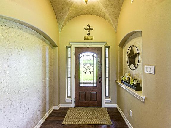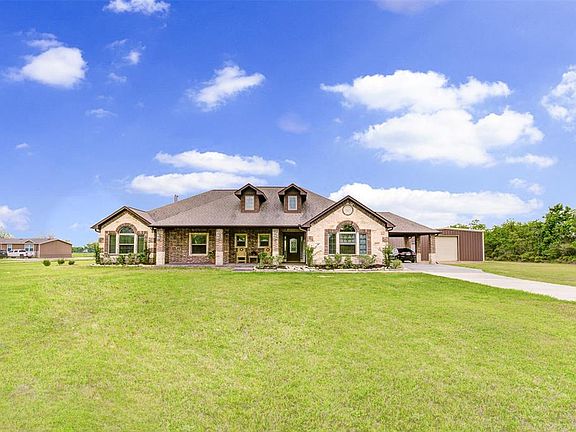 This custom beauty sits on 4 acres you will experience country living at it's finest from the moment you step onto the inviting front porch this home will have you wanting to race inside to see more of what it has to offer !Upon entering into the grand foyer you will see the beautiful architecture in the ceilings that are throughout the home* The Texas size den offers a stone corner fireplace, engineered wood flooring and large picture window* The spacious kitchen is sure to please the chef of the family with granite counters,under cabinet lighting and expansive breakfast/serving bar you will quickly see the entertaining possibilities*The lovely barrel ceiling in the hall leads you to the secondary bedrooms with the master suite on the opposite side offers a beautiful recessed ceiling w/accent lighting, large walk in closet w/hidden room and oversized walk in shower *covered patio & outdoor kitchen*bring your toys & horses* 30x30 workshop w/roll up doors *pond &private water well !!
