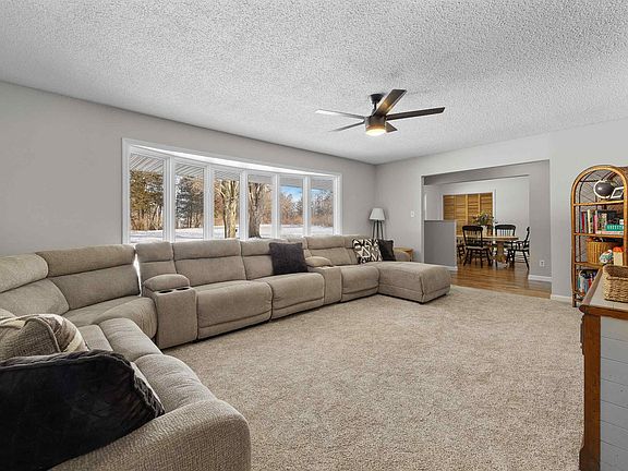 Nestled just outside Lafayette on nearly 5 wooded acres, this beautiful private retreat offers peaceful seclusion with stunning views of the Wabash River from the back of the property. This spacious walk-out ranch home offers almost 4,000 finished square feet of living space. A 34x48 pole barn with electric and a 50-amp RV/camper plug adds plenty of space for storage or projects. The main level welcomes you with a living room featuring newer carpet and a cozy wood-burning fireplace in the extra family living space. You'll also find beautiful hardwood floors that have recently been refinished and brand new AC. The updated kitchen boasts white cabinets, sleek granite countertops, and modern finishes throughout. The bathrooms have been thoughtfully upgraded and redone, offering contemporary fixtures and finishes that create a fresh, luxurious feel. The finished basement adds even more living space, with a rec room, wet bar, bedroom suite with egress windows, and a full bath, along with a bonus room and ample storage areas. Enjoy the perfect blend of privacy and comfort in this home.