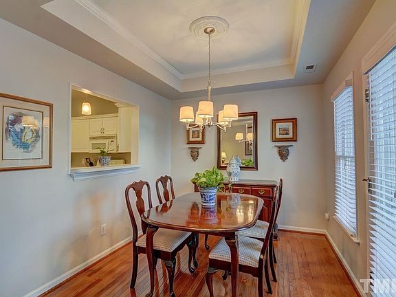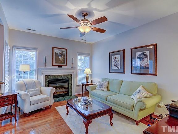 Immaculate & move in ready townhome style condo in prime NW Raleigh location. 9 ft ceilings. Hardwoods throughout most of 1st floor. Updated light fixtures. 2 story foyer. Spacious family room features gas log fireplace. Separate dining area. Bright & open kitchen with tiled floors. Large master suite includes trey ceiling, garden tub with separate oversized tiled shower and huge walk in closet. All appliances convey. 1 car garage with walk up storage area. Wood blinds throughout.
