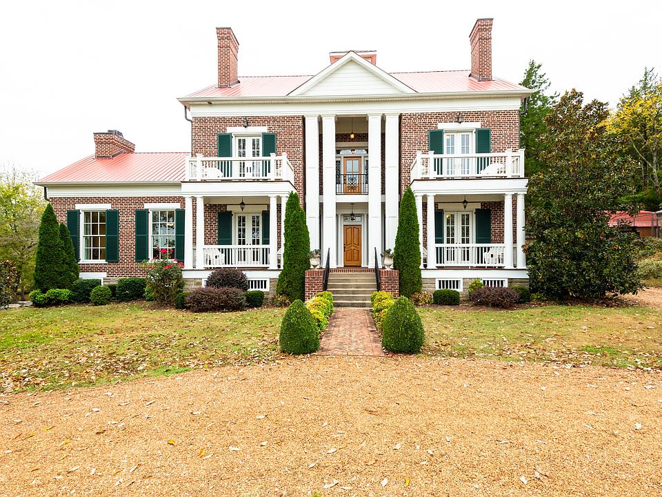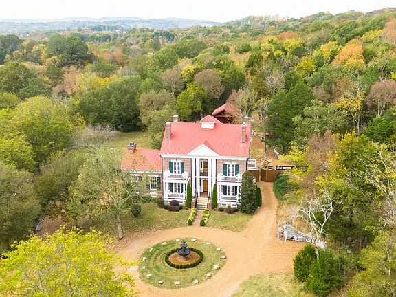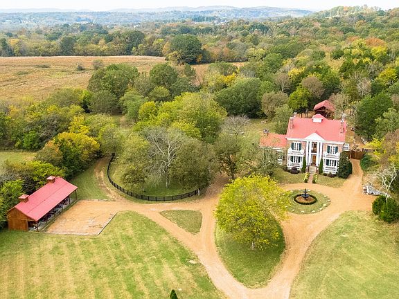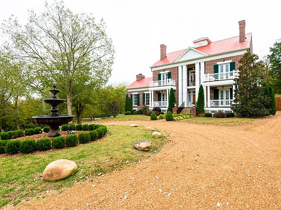 Incredible Greek Revival masterpiece perfectly set on 11.37 scenic Williamson Co acres. Real wide-plank hickory floors. 13 sitting porches! 1850s log home incorporated as kitchen with fireplace, brick floors & solid custom cherry cabinetry. Luxurious owner's suite has fireplace, private porch & newly renovated bath with custom glass shower. Stocked pond. 3 fenced acres in back. Heated/cooled dog kennel. Barn built to accommodate horse stalls or cars. Entertainment pavilion with storage.