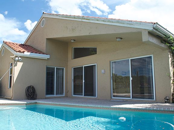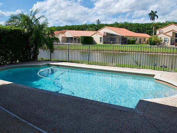 BRING ALL OFFERS OWNER IS MOTIVATED! Beautiful lakefront home with 4 bedrooms, 2 1/2 baths and in-ground pool. Located in prestigious gated community of Brentwood Estates Boca Raton, home has great location off Lyons Rd between Glades Rd and Yamato Rd giving you perfect city location with quiet countryside feel, lakes, lush landscaping and mature trees for walks with pets, jogging and biking. Home has high vaulted ceilings in the living/dining area, crown moldings and updated bathrooms with split floorplan. Enjoy the large primary bedroom and luxury bathroom, updated kitchen with soft close cabinetry, granite counters with LED lights. All newer appliances. HOA covers cable, internet, lawncare and club facilities. You will not be disappointed!