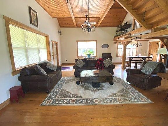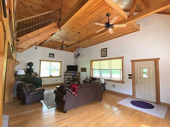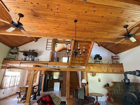 Wonderful year-round home or hunter's paradise! This distinctive property borders the ANF & is minutes away from the Tidioute Overlook & Allegheny River. The tongue & groove cathedral ceilings, beams & woodwork beautifully accent this open concept home. The spacious living room opens into the kitchen & dining room, making it great for entertaining. There's hardwood floors & tons of natural light that lead you through the home. Take the stairs to the large master suite with full bath & walk-in closet. There's a loft area with many possibilities (think home office, additional bedroom or a fun kid space). The front porch is perfect for relaxing on the swing or enjoy the firepit on those s'more kinds of nights. Or maybe you'll find yourself in the workshop creating something new. The two stall garage has large barn attached with horse stalls for boarding or storage. It is move-in ready with most furnishings staying (or they can be removed). All this and it sits on 3.57 acres!