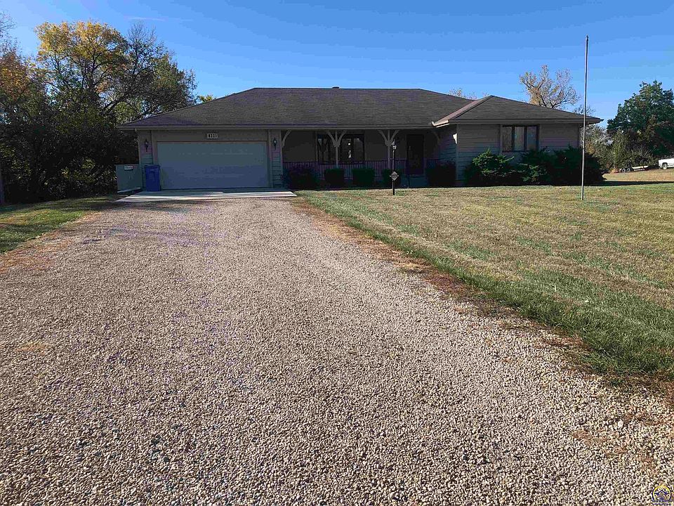 Washburn Rural home with 2.97 acres. Main floor has three bedrooms, Two and a half baths, main-floor laundry. Large eat-in kitchen with see-through FP. Covered deck off kitchen overlooks large yard with a view of trees. Home has a side-porch off kitchen for grilling, etc. Primary bedroom suite with walk-in closet and private bath. Full poured concrete basement to be finished as you wish. Lots of potential with lots of space.