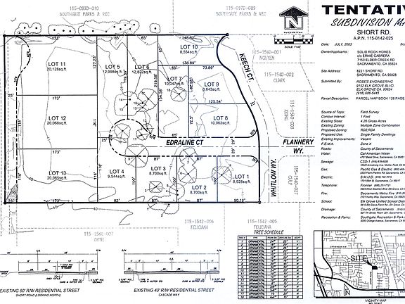 * Prime location (in a growing & popular area) * 4.05 Acres (tentative subdivision map approved for 13 lots) * Area rated as safer (and closer to top schools in Sacramento) * 3 min. to everything (groceries, banks, parks, shops, and more!) * Next to Tillotson Parkway (bicycle, pedestrian, recreation area) Short Road is among the last holdouts of undeveloped property that is both in a popular, desirable, and growing location. Located in Elk Grove, a newer and trendier area of Sacramento, just minutes to everything grocery stores, banks, restaurants, coffee shops, community parks, shopping, and so much more. It’s also less than 5 minutes to Home Depot, Loses, Starbucks, Costco, CVS, Planet Fitness, etc. Be away from the business of downtown Sacramento, while enjoying all the amenities of a big city. Still want to visit the Historic District? Short Road is just a few minutes from the 99 freeway entrance making it an easy trip to anywhere in Sacramento. Perfect for families too! Trulia has rated this area as being safer area and closer to their top rated schools as well. It’s also next to Tillotson Parkway, a four-mile bicycle and pedestrian transportation and recreation area. (see more about Tillotson) Zillow Market data indicates that Sacramento metro areas are seeing an average annual growth rate of 10%. This is the perfect time to get in build a new subdivision in a growing and desirable area. At just over 4.05 acres, this lot has approved plans to be subdivided into 13 lots. Three larger lots zoned RD2 on Short Road, the others to be zoned RD4 are accessed from Keech Court in an area with numerous neighborhood parks (nearest being Hardester Park).