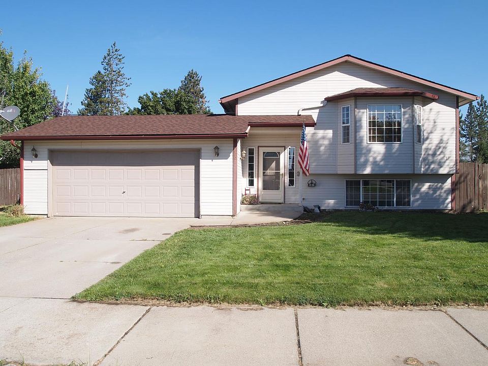 Beautiful 4 bedroom 2 bathroom split level single family home sits on just under a quarter acre corner lot. Upper level features two bedrooms, 1 full bath, family room, dining and kitchen and on the lower level there are two bedrooms, 1 full bath, a large family room and laundry room. New carpet was installed this Spring throughout the whole house, complementing hardwood in the open dining area. Large windows and fresh paint make this house a bright and comfortable home. Large fenced backyard, sprinkler system, and two car garage.