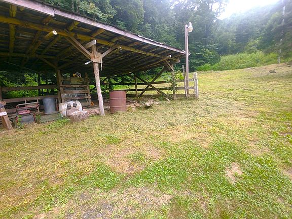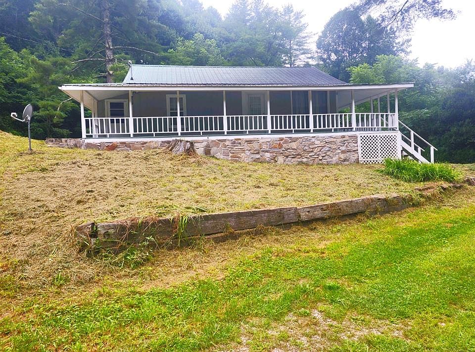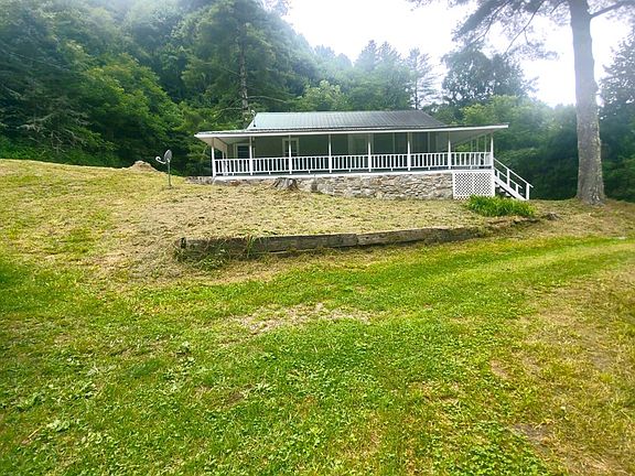 This Farmhouse has 3 bedrooms and 2 bathrooms with a den. You can hear the creek from your wraparound porch. 1.76+/- acres with a lean- to for storing all your toys and lawn equipment. Room for a garden and the outdoor enjoyment. All furniture, appliances and right down to the dishes and pots and pans go with the sale of the home. Some newer windows, siding and the metal roof was done in 2004 per last owner. Floor plan is split, and back bedroom has a bathroom and a bath and den with its own porch and entrance.