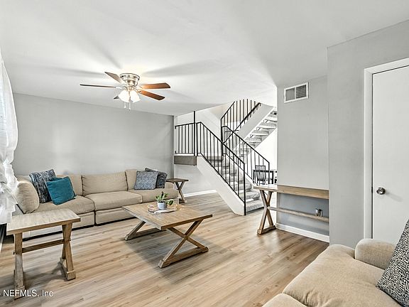 Welcome home to 8222 Kensington Square - a charming 2BR, 2.5BA townhouse blending comfort, updates, and convenience. The bright kitchen features stainless appliances and a nearby stackable washer/dryer. Sip coffee on your private fenced patio or relax in the spacious living room, with exterior upkeep handled by the HOA. Two large primary suites include updated vanities and new tile for a spa-like feel. Recent upgrades: new plumbing (2024), vinyl plank flooring (2024), Nest thermostats, whole-home water filter, and newer air handler/ducts. A private storage shed adds functionality. Enjoy Sutton Place amenities: refinished pool, bridge-covered creek, and a well-kept community minutes from shopping, beaches, and downtown Jacksonville. Perfect for first-time buyers, downsizers, or investors!