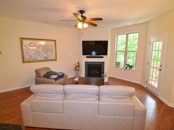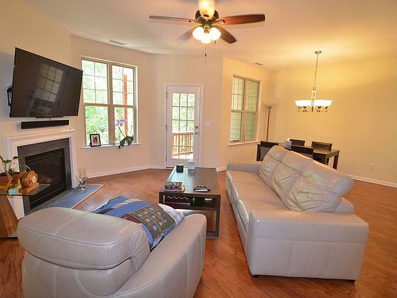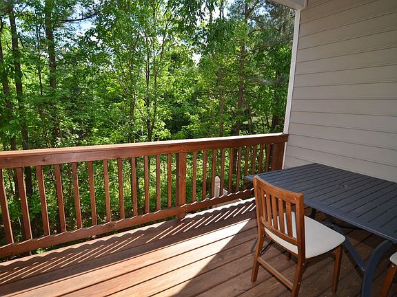 Spacious open floor plan with hardwood floors throughout first floor & 9ft ceilings in entire home. Kitchen features granite counter-tops, tile back-splash, walk-in pantry & stainless steel appliances including a gas range. Gas fireplace in living room. Roomy master with trey ceiling, walk-in closet, dual sinks, garden tub & separate shower. Private deck overlooking woods. Covered front porch. 1 car garage. Shopping, dining & everything you need nearby! Short drive to downtown, airport & I540.