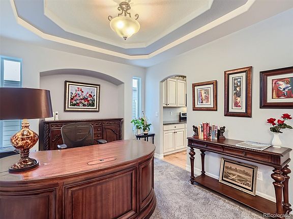 Welcome home to this beautiful patio home nestled in the heart of Arvada. Step thorough the gorgeous glass front door and fall in love with this well planned floor plan offering amazing main level living with an attention to detail around every corner. Everything you need on one level including a front office, formal dining or secondary office space, spacious family room, large convenient laundry room, and kitchen with a breakfast nook. Beautiful hardwood floors run throughout the kitchen and breakfast nook along with an abundance of fabulous white cabinets, granite counter tops and stainless steel appliances. The open floor plan spills into the spacious family room allowing for great entertainment space. The primary bedroom has a wonderful full bay window area for enjoying a cozy reading spot.The adjoining primary bath is a treat for the eyes with its herringbone tiled, oversized shower, double sinks, and adjoining large walk in closet. The secondary bedroom is very large and has a huge walk in closet. Located directly across from the public 3/4 bathroom, it is almost like having a secondary primary bedroom. The two car garage steps into the convenient laundry room area with easy access to either the kitchen or the bedrooms. Art niches and coffered ceilings show the attention to detail throughout this home. A large unfinished basement gives you an option for all the storage you could need or the abiolity to add even more living space. Finish this basement with confidence as the home is built on a structural steel floor with a radon mitigation system and sump pump installed. Located near an abundance of shopping and the Arvada Arts Center with quick access to I70 to head either downtown or to the Colorado mountains. Includes fully paid for solar panels that reduce your energy bill between 20-30%. Indescriminatly placed so the exterior remains visual pleasing. These homes sell quickly so don't miss out on your chance to make this your new "Home Sweet Home".