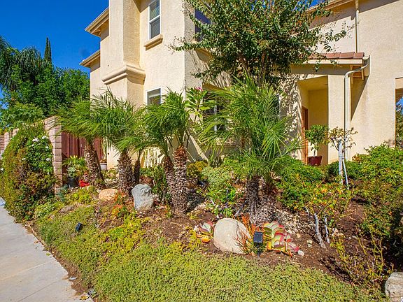 Wonderful corner lot property situated in a gated community with solar panels and a low HOA of $138 per month! This cul-de-sac home has it all! Built in 2006, over 2,6000 feet of living space on a 6000 square foot lot! New A/C coil, two car attached parking garage, updated kitchen with stainless steel appliances, granite countertops overlooking the family room, gleaming laminate floors throughout the house and clean carpets in the bedrooms and a separate laundry area located next to the master bedroom upstairs. Two gas fireplaces, one in the family room and one in the formal living room. This home features high ceilings and an open floor plan that is perfect for entertaining family and friends. All bedrooms are located upstairs, master bedroom is spacious with a walk-in closet and a master bathroom which features a dual sink, vanity and separate shower with a soak in tub. Sliding doors that lead to a private yard with lush greenery to enjoy 12 months of the year! You do not want to miss this opportunity!