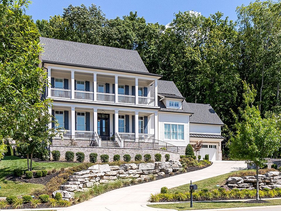 Picture perfect Southern Belle! This warm and inviting home offers simple elegance, easy living and low maintenance. Open, bright floor plan boasts designer-appointed touches throughout. Backyard woods provide a peaceful setting. Rare main level Primary and Secondary suites. Two more bedrooms and baths, office/library, den w/ wet bar and bonus room on 2nd floor. Toast the amazing sunset from both deck levels. Don't miss your opportunity to live your best life here in The Grove- voted the #1 Best Neighborhood in Williamson County. This private, resort style country club has golf, tennis, pickelball, Manor House, elegant dining, casual pub, 3 pools, gym, spa, fishing, kids club, horseback riding and more!