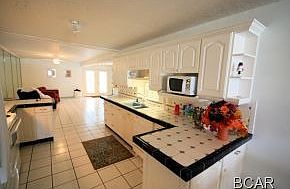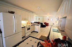 this gulf front home is very large....it has 8 bedrooms with a mini kitchen in the master suite , 5 baths in the main house and the attached apartment there are 2 bedrooms and 1 bath which gives you a total of 10 bedrooms and 6 bathrooms.....the main home has a very large kitchen with living area plus den....the apartment has a kitchen, living area and ......there is a front porch that overlooks the gulf.....this a approx sq footage...please measure for accuracy....