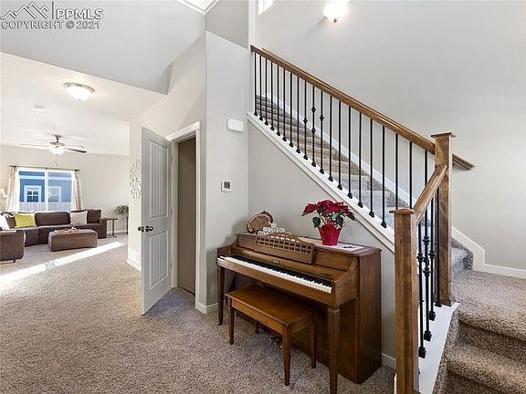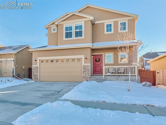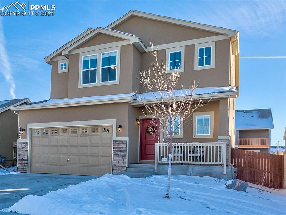 Near Woodmen Rd & Marksheffel in the desirable Shiloh Mesa community on a quiet street. Welcome to this 2-years New, almost 3,000 sf, 3-Bedroom, 3-Bathroom, outstanding 2 Story Stucco Home with Mountain Views and beautiful curb appeal with a warm and cozy Front Porch. The bright & cheery Main Floor has a fabulous open concept oversize Great Room that flows into the Dining area and Kitchen with gorgeous hardwood flooring. The spacious Dining area has a walk-out to a garden patio in a large low maintenance fenced backyard. The gorgeous Kitchen will delight everyone with sleek Granite Countertops, Island with counter seating, 42" Cabinets, a walk-in Pantry, and All Appliances: Dishwasher, Microwave, Range, and Refrigerator. On the amazing upper level with Mountain Views, there is a large Loft for versatile use and a conveniently situated Laundry Room. Delightful Master Suite has a grand 5-piece Bath with a walk-in Shower, Oval Tub, raised Vanity, and a large Walk-in Closet. Two additional pleasant Bedrooms have Walk-in Closets, with a lovely Full Bath in between. The large unfinished basement with three egress windows for abundant natural light and with roughed-in plumbing for a future bath offers incredible options for finishing the basement. The house is complete with Central Air-Conditioning, a Humidifier, and an auto Sprinkler System. Ideally located only minutes to an overabundance of restaurants, entertainment, and shopping with an easy commute to Peterson, Ft. Carson, and Air Force Academy. You would want to be the first to see this exceptional property in a model like condition, at an Incredible Price, ready to move in, and call it home.