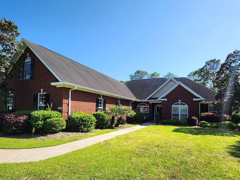 Forest Lake Estates is a quiet community with limited traffic and a private gated entrance onto Myrtle Ridge Road as well as access of off Hwy 501 at the Burning Ridge Golf Course entrance. This home is an all brick 5 Bedroom, 3 Bath and has 3488 heated sq. ft. and 4487 sq. ft. under roof. This executive home is situated on the #1 fairway at Burning Ridge Golf Course!  As you walk in the front door of this home, you will enter a large foyer that accesses a large formal living and dining room. The updated kitchen boasts custom cabinets, island and a new stainless-steel refrigerator and is open to the family room and Carolina room. The family room has a fireplace and has access to the raised outdoor deck, which is great for entertaining. This home does have a split bedroom plan. The oversized master bathroom has 2 walk in closets for him and her as you enter the master bathroom. There are 3 other bedrooms that are located on the first floor. Upstairs above the garage is the spacious 5th bedroom with a walk in closet and full bath, perfect for a man cave of she shed or a mother-in-law suite. There is a 999 square foot 3 car garage with new epoxy paint. You will never worry about having enough storage that this home will provide you with. Also, this home has a central vacuum system, and home is wired for surround sound. This home has neutral colors throughout and has a pristine golf course view while you are in the back yard. The mature landscaping on this .41-acre homesite is like being in a park like setting and has an irrigation system to keep your yard nice and green. Forest Lake Estates is conveniently located close to Conway Medical Center, shopping, golfing, restaurants, and a short ride to the beach. All measurements and square footage are approximate and not guaranteed. The buyer or buyer’s agent is responsible for verification.