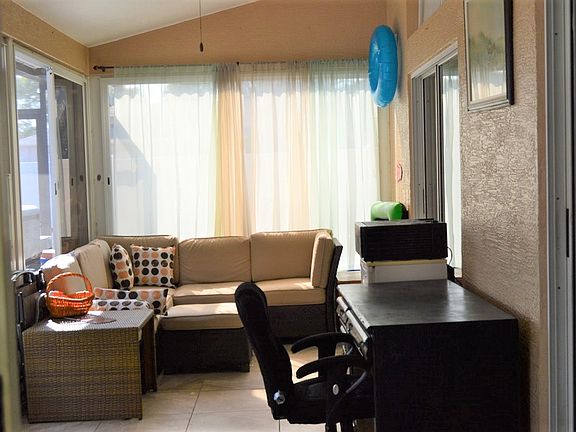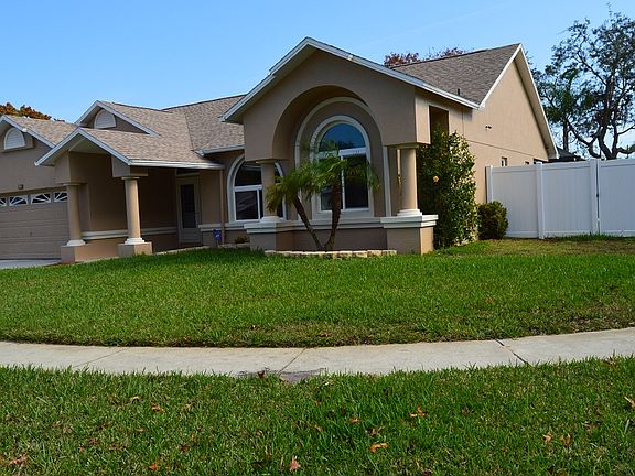 This updated Solar heated Pool home has 3 bedrooms, 2 baths, an over sized garage and more. The fully enclosed Florida room over looks the screen enclosed pool with built in sprinklers and paver two level deck. The Master bedroom opens onto the Florida room, as does the breakfast area. Features separate living room and dining room and a large family room. NEW roof, NEW sink, NEW sprinkler well, New A/C, NEW windows, NEW on demand water heater, NEWLY painted exterior, Newly resurfaced garage floor and more. The master bedroom features 2 walk-in closets and the master bath room features double sinks, a garden tub and separate shower stall. Full outdoor security system, privacy fence and storage shed. All information should be verified by buyer.