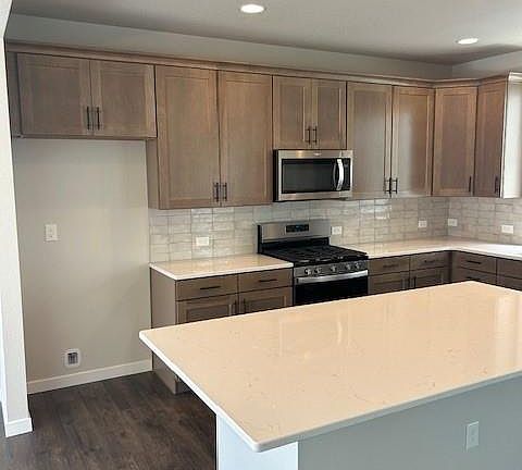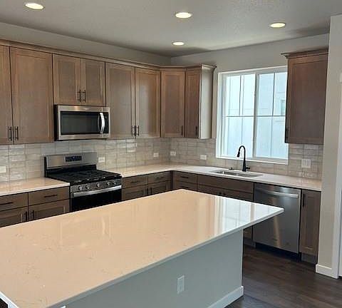 Ready now! Blossom 2-story plan in Homestead at Sterling Ranch. 3 bedrooms, 2.5 baths, 2 car garage home. Farmhouse style exterior. Kitchen features Shaker-style maple cabinets in a pecan finish, elegant Carrara Trigato Quartz countertops, island that seats 4, pantry, and stainless steel appliances including a gas range. The upper level hosts a master bedroom and two secondary bedrooms. The master bathroom features a large shower with seat and sleek, long vanity with double sinks and walk-in closet. Home comes equipped with a smart home package, passive radon mitigation system, and air conditioning. Exterior living space includes a patio conveniently accessed from the dining area and includes a gas line suitable for a grill. Full yard landscaping included. Seller incentives available.