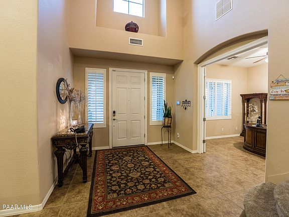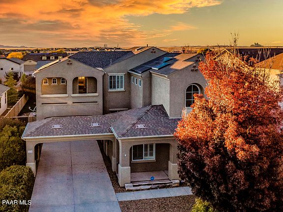 INCREDIBLE VALUE in Prestigious Pronghorn Ranch Subdivision of Prescott Valley... Excellent Curb Appeal with obvious Pride of Ownership in this 3888 Square Foot, 2 Story Contemporary Ranch on a larger .25 Acre lot featuring 4Bedrooms/3Bathrooms/4CarGarage (Tandem), Den/Office, 2 Car Portico(Carport), HEATED POOL, & fully paid for/Energy Efficient SOLAR SYSTEM (Saving $200-$300/Month)!!! Additional amenities include 18'' tile in all Wet/Traffic areas, New Carpet in Bedrooms, PLANTATION SHUTTERS, Formal Dining area with Coffered Ceiling, GREAT ROOM Concept, Gas Fireplace w/Stacked Stone Chimney Face, Ceiling Fans, wired for Surround Sound, Crown Moldings, & has Central Vac. Kitchen is well appointed with Oak Cabinetry, QUARTZ Countertops, Large ISLAND w/Breakfast Bar, Double Ovens, Gas Cooktop, Stainless Steel Fridge/Dishwasher, & Large Pantry. Your New Master Suite is Quite Spacious, has Dual/Segregated Sinks, His & Her Closets, Large Garden Tub, SNAIL SHOWER, has access to Private Balcony/Patio, & has a Workout Room/Den/Nursery adjacent to Master. Other features include Large Laundry with Upper & Lower Cabinetry w/Folding area, (Washer & Dryer) Conveying, Bedrooms 2 & 3 are large with Walk In Closets, Epoxy Floor in Garage, Large Covered Front Porch, Large Covered Patio in Rear, Fenced Back Yard, Separate Dog Run, Artificial Grassed area, Extended Open Patio leading to POOL, Built in BBQ, Water Fall-Water Feature, & Security Screen Door. We could go on but it would be best if you would COME & SEE IT!!!!