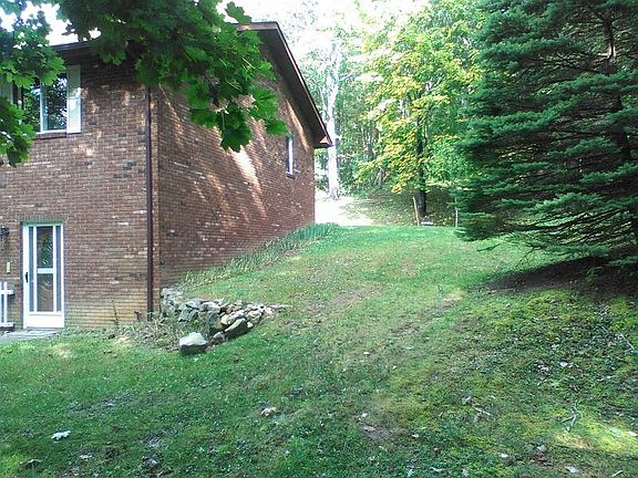 A beautiful brick ranch on 4.9 acres. This home is well built, well maintained with a retired couple as only occupants. This home has a large living room, dining room, and kitchen combined. Also on the upper level is a large family/rec room, two bedrooms, and one bath. The lower level has two finished rooms with a bath that would make a good separate living quarters. On the lower level is a large single car garage and a large workshop/mechanical area. Upgrades include hardwood floors, cathedral ceilings, bay windows, custom oak cabinets, and four brick fireplaces (one with gas logs and two with wood stove inserts). It is energy efficient with 2x6 walls, thermopane windows, and heat pump.