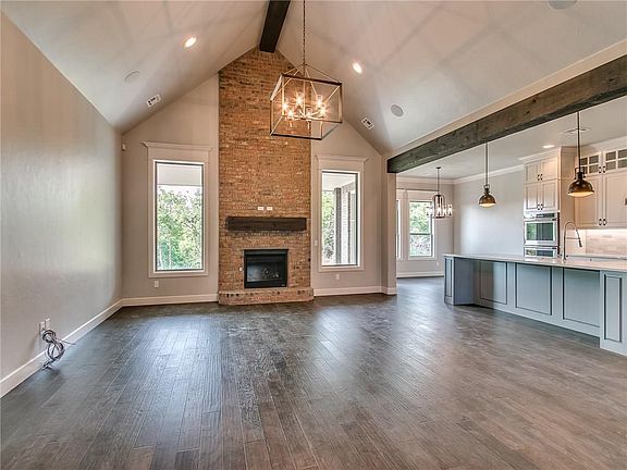 Amazing attention to details with your growing family in mind! Open entry way leads you right to your main living spaces perfect for entertaining. Your living room boasts a fireplace, cathedral ceiling with a cedar beam and opens to the kitchen area. The kitchen is the heart of this home with large breakfast bar, dining area, a walk in pantry, and built-in hutch. The master oasis features barrel ceiling, tiled walk-in shower, jetted tub, a huge walk-in closet with utility access, and a private covered patio. Study/formal dining with built-in beverage area for family and friends gatherings. Mud bench and folding table in the utility room. Modern and traditional design styles are blended beautifully to make this the perfect home. You deserve this lifestyle! Ridge Creek, an Edmond gated community with a neighborhood pool. Welcome Home!