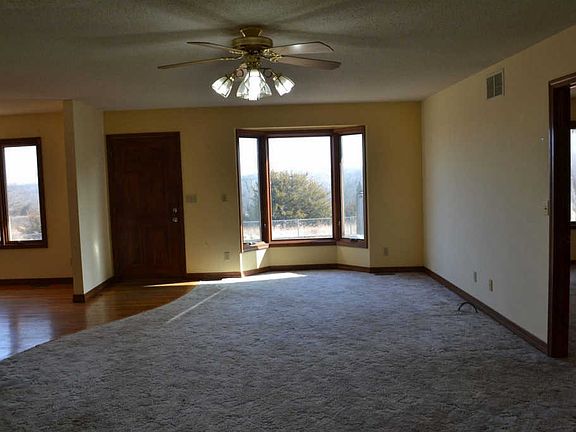 Country Living with a beautiful view! This Shawnee Heights Berm home is 3Bd/2Bth with over 1700 SQ FT on 4 plus acres. Spacious master bedroom with walk-in cedar closet. Kitchen has custom built solid oak cabinets and opens up to the dinning room with a large window and a spectacular view! Two car garage and outbuilding with hangover. Listing agent is related to seller.