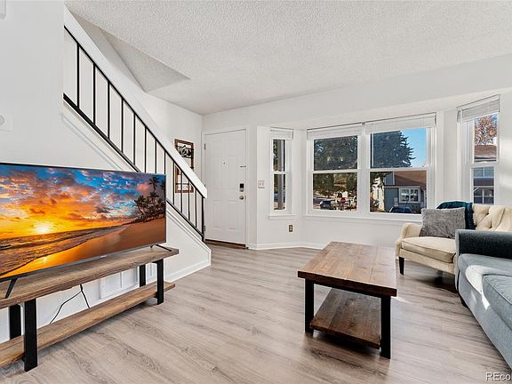 This charming 2-bedroom townhome in Shiloh offers an incredible opportunity in a welcoming, animal-friendly community. Just a stone's throw from downtown Denver, with easy access to I-25 and public transportation, this home boasts both convenience and comfort. The private, low-maintenance backyard features gate access to open space, outdoor storage off the patio, and fresh xeriscaping. Inside, the main level showcases laminate wood floors, a neutral color palette, and a bright living room with a large bay window and cozy wood-burning fireplace with a striking floor-to-ceiling stone surround. The cheerful kitchen includes modern stainless-steel appliances, ample light gray and white cabinetry, and an open dining nook. Upstairs, you'll find two spacious bedrooms with excellent storage, including a primary bedroom with its own bay window. The home also features in-unit laundry, great water pressure, and storage throughout. Recent upgrades include new blinds, flooring in the kitchen, bedroom and laundry doors, a new sink in the upstairs bath, updated landscaping, freshly painted exterior, new door hardware, and stylish new light fixtures. Move-in ready and full of charm, this home offers a perfect balance of modern updates and cozy living in a fantastic location.