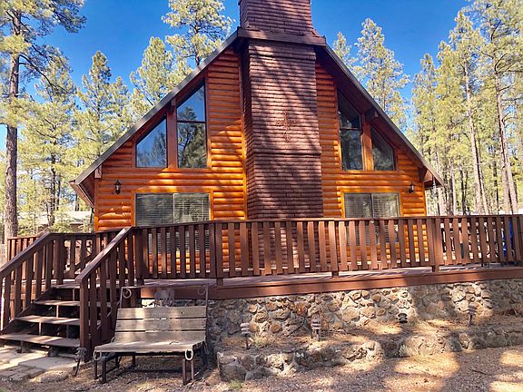 Charming Picture Perfect log sided cabin in Pinetop Country Club. Vaulted wood ceilings, beautiful stone fireplace, newer metal roof, lots of wood accents are just a few of the many amenities in this cabin. Remodeled kitchen, large wrap around deck to enjoy the cool mountain air! Beautifully landscaped with flower beds, play area, separate brick patio off to the side of cabin. Close to National Forest, hiking, skiing and golf! Being sold furnished and move in ready!