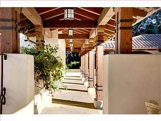 You reach this Spanish/California estate via a private tree-lined drive. A single-level Hacienda welcomes you. The warm faux-painted interiors featuring hand-hewn beams, custom tiles and distressed wood floors create a comfortable, spacious retreat. The setting is gorgeous, offering Monterey Bay and city light views with spectacular sunsets! For outdoor entertaining, enjoy a heated ocean-view pool with cabana. Guests will appreciate the private entry casita which includes a living room, kitchenette and private bedroom and bath. Car enthusiasts will appreciate the 6 car garage and workshop. One garage bay accommodates a 40' boat or RV. From the gourmet kitchen to the private master suite, no detail was spared., including custom lighting, Carmel stone accents, wrought iron details and so much more. Social membership to the Tehama Golf club is included.