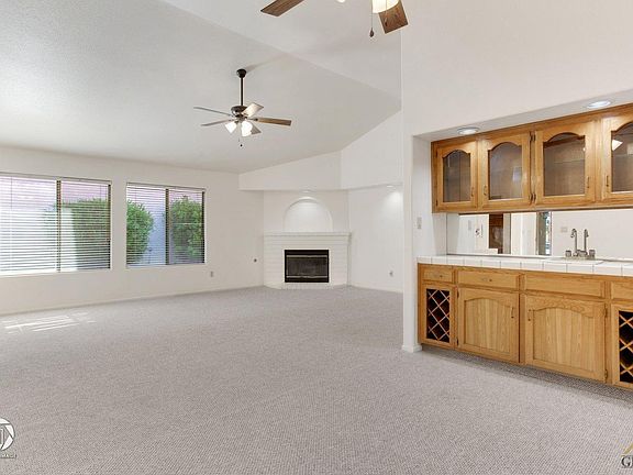 Beautiful 3 BR single story Vineyards 1562 Plan with fresh paint, new berber carpet on a larger lot. Quiet Cul-de-sac, great location within VERY desirable neighborhood. Open living area w/ Fireplace, Dining room has built-ins and wet bar, Kitchen has double sinks, indoor utility room, 2 car garage. Lots of cabinets/storage. The master suite offers access to the backyard and a bath with double sinks, and a spacious shower. There is recessed lighting + skylights, decorative niches. Big back yard & side yard for the Vineyards. Lovely private amenities in the is highly sought after neighborhood just $95 monthly HOA fees for NICE tennis courts, 2 Pools (family pool + adult only pool), hot tub, picnic area and a large park. SUPER CLOSE TO CSUB, The Marketplace, Trader Joes.