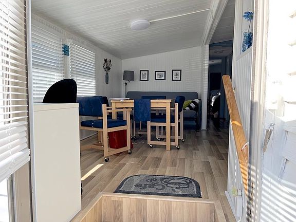 This Beautiful 1 Bedroom, 1 Bath FULLY FURNISHED Mobile Home is in Orchid Lake, a 55-Plus Community with LOW $425 Lot Rent and has no Back Neighbors! This Adorable Home has so much Custom Quality you will appreciate and it makes for the Perfect Winter Paradise Spot. The Addition has been Opened Up to be part of the home. This Open Floor Plan has Laminate Flooring Throughout, Vaulted Ceilings and All Weather Windows in the Addition. There is an expandable table with four chairs, a desk area, an electric loveseat and even an Electric Fireplace. A queen futon is set up here and all ready for your guests. The Kitchen has Custom Solid Wood Cabinet Door and drawer fronts, a slide out spice rack, Large Pantry and built-in microwave. An electric stove is self-cleaning and the Double Sink has a stainless pulldown handle faucet Down the hall towards the Bedroom is a Spacious Tiled Bathroom with a tub and sliding enclosures. The Large Vanity is custom built as well as the oversized medicine cabinet. The Bedroom has a nice quality queen bed and a Custom Headboard placed over the window for warmth and privacy. The base of the bed is a huge custom built storage bin. Built-in drawers as well as a double closet provide additional space for your wardrobe. Walking out towards the back door is additional storage shelves, a small refrigerator, a printer all set up and indoor Laundry Room with a Washer and plenty of drying lines. Outside is a Private Patio, a grill and an umbrella with nice wrought iron furnishings. In March 2021 a New Shingled Roof was installed with a Transferable Warranty. An Antenna provides 10+ channels for free. This one definitely will not last! Orchid Lake RV Resort is a 55-Plus Gated Community in New Port Richey, FL. This Active Community is on Scenic Orchid Lake. Amenities include a Clubhouse with a Billiards Room, library and Exercise Room, a Heated Pool with views of the lake, a Picnic Area with Fire Pit, Nature Trail, a Hobby Shop, a Driving Range with a Net, and many other activities. Low Lot Rent of $425includes water, sewer, trash, lawn and all the Park Amenities. Sorry - No Pets. The Community is close to Shopping and Restaurants, and a Brand New VA Hospital being built across the street. ------------ CASH ONLY ------------