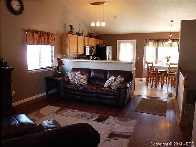 Wonderful ranch style home on a quiet street. This open floor plan is great for entertaining with the kitchen being open to the living area w/vaulted ceilings and a bay window. The gourmet kitchen has stainless steel appliances, custom tile backsplash, pantry & lots of cabinet space. Dining area has a bay window and walk out to patio. The main level Master Bedroom has an attached full bath and a walk-in closet. Main Level Laundry. Finished basement. Less than 3 miles to Ft Carson and close to Peterson AFB & Schriever AFB. The large lower level features two additional spacious bedrooms, a bath, huge family room and storage area. The beautifully landscaped backyard features an oversized concrete patio and a storage shed. Also, very close to shopping and schools.